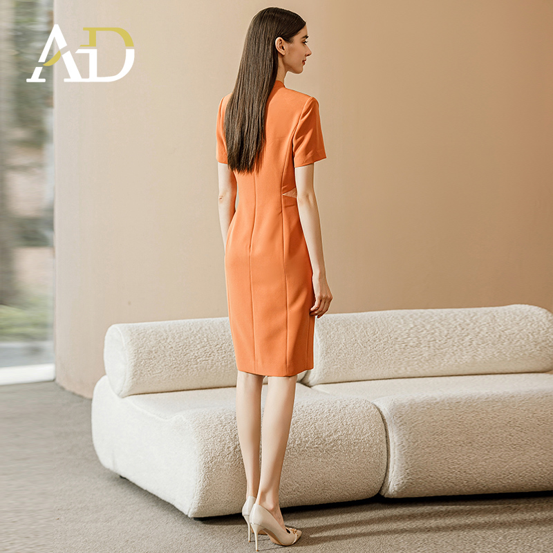 Manufacturer Wholesale Orange Ladies Dresses Office Wear Ad Dress For Women Formal