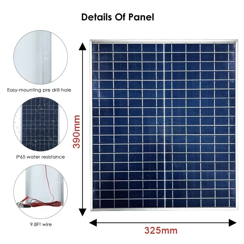 Multiple Compatibility: The perfect solar kit is suitable for various off grid applications, such as sheds, cabins, door openers, etc. using 12V batteries, as well as charging and maintaining batteries in cars, Rv, boats, trailers, campers, pumps, etc.