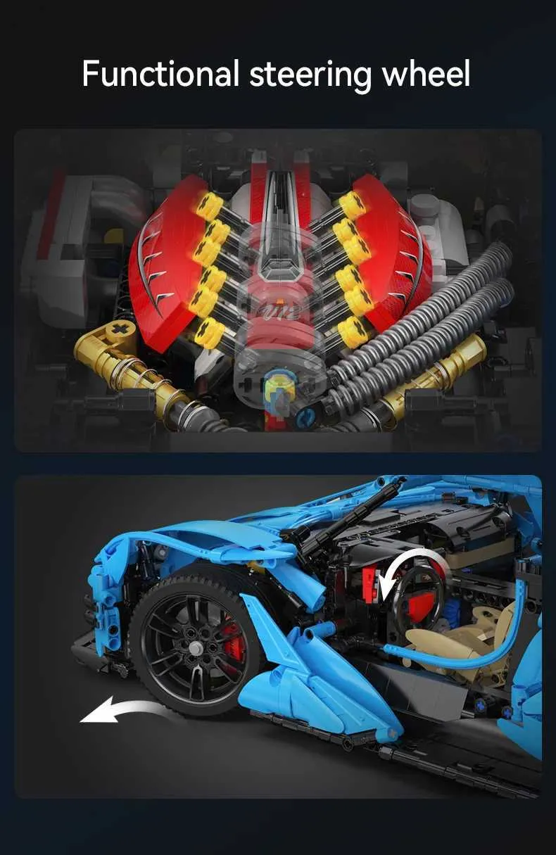 Cada 3865PCS 18 Ci Blue Racing Car V12 Hypercar Model Building Blocks Famous Supercar Sports Vehicle Bricks Toys Gifts