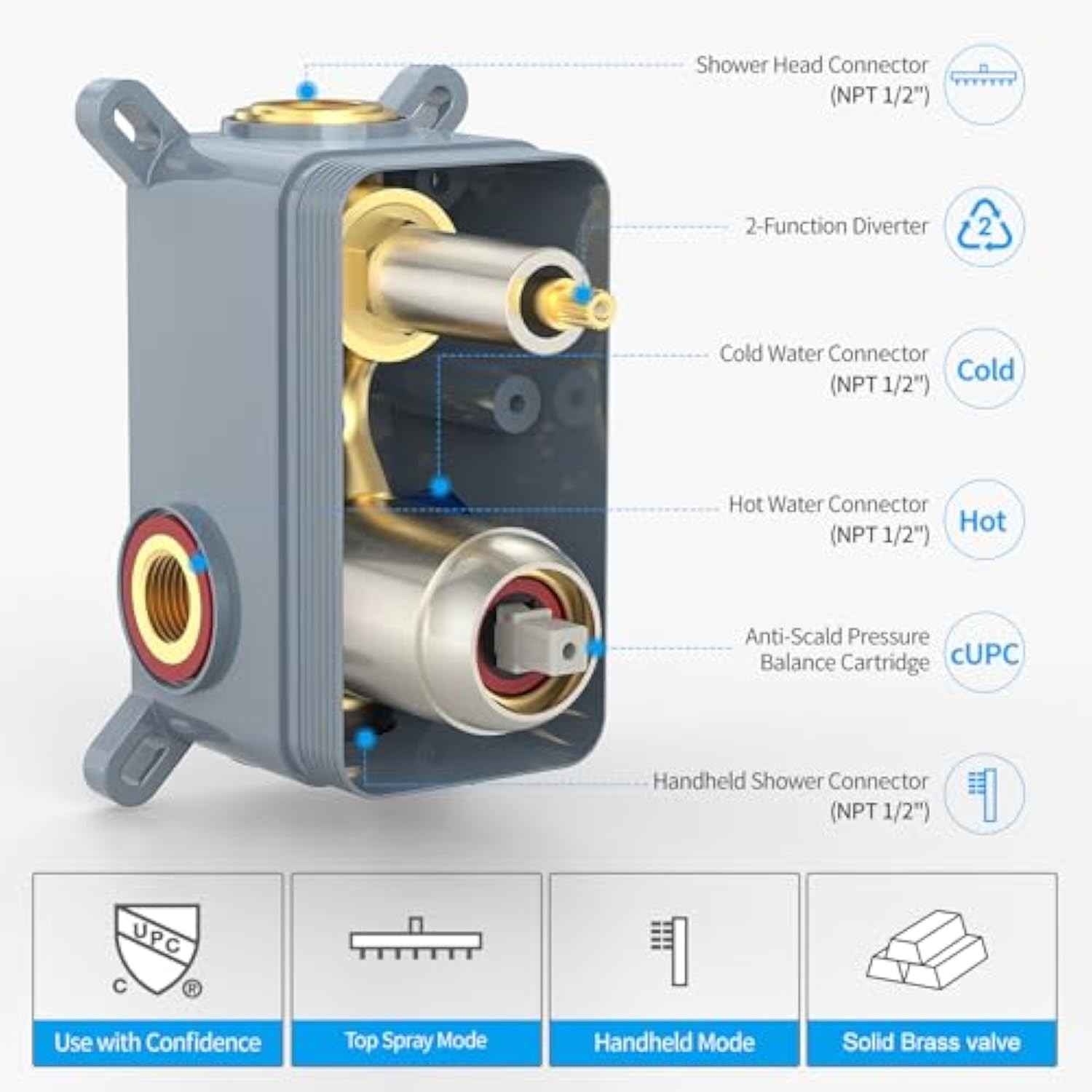 EMBATHER Shower System 12" Shower Faucet Set for Bathroom Luxury Rain Mixer Combo Set Wall Mounted Rainfall Square Shower Head, Easy Installation, Contain Rough-in Valve & Trim, Brushed Nickel