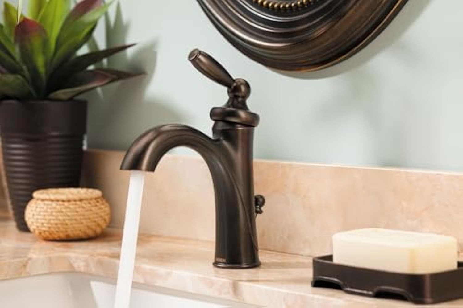 Moen Brantford Oil-Rubbed Bronze One-Handle Traditional Low-Arc Bathroom Faucet with Optional Deckplate and Available Vessel Sink Extension Kit, 6600ORB