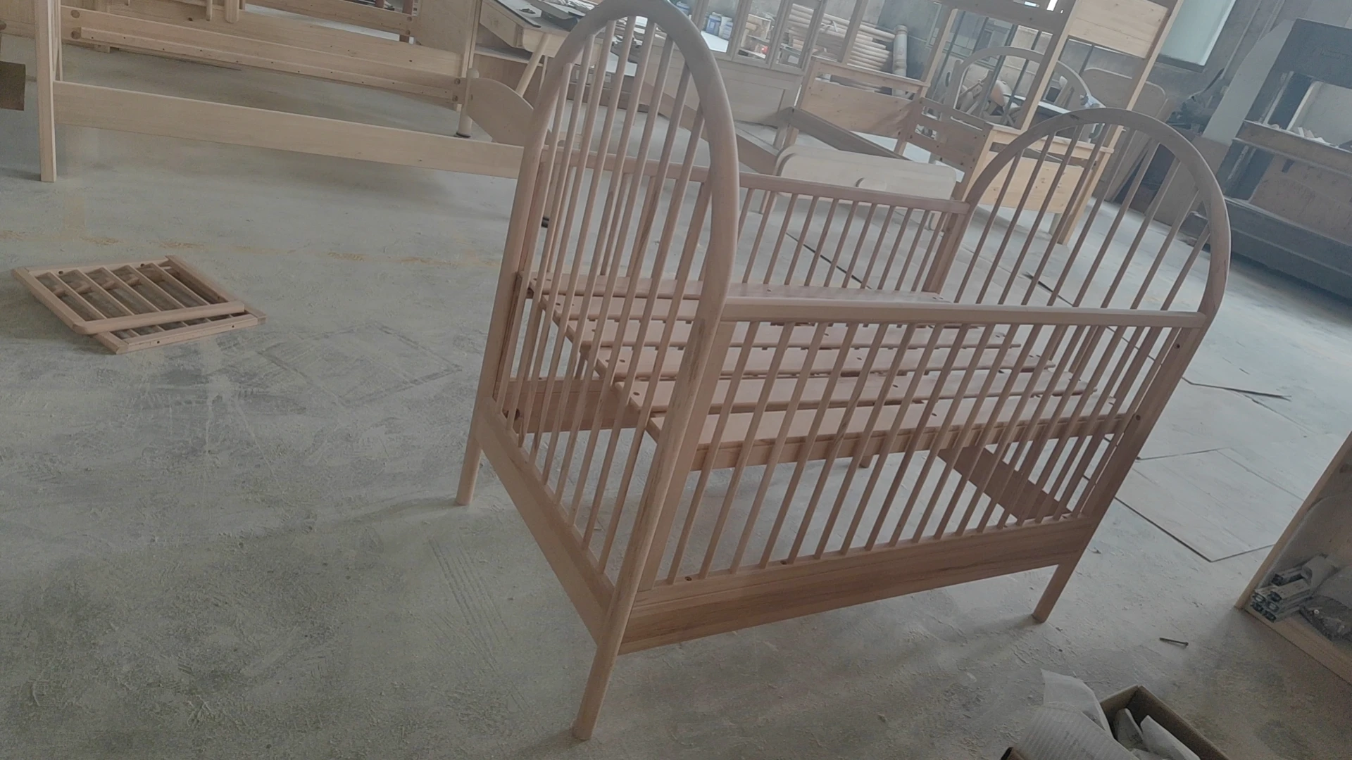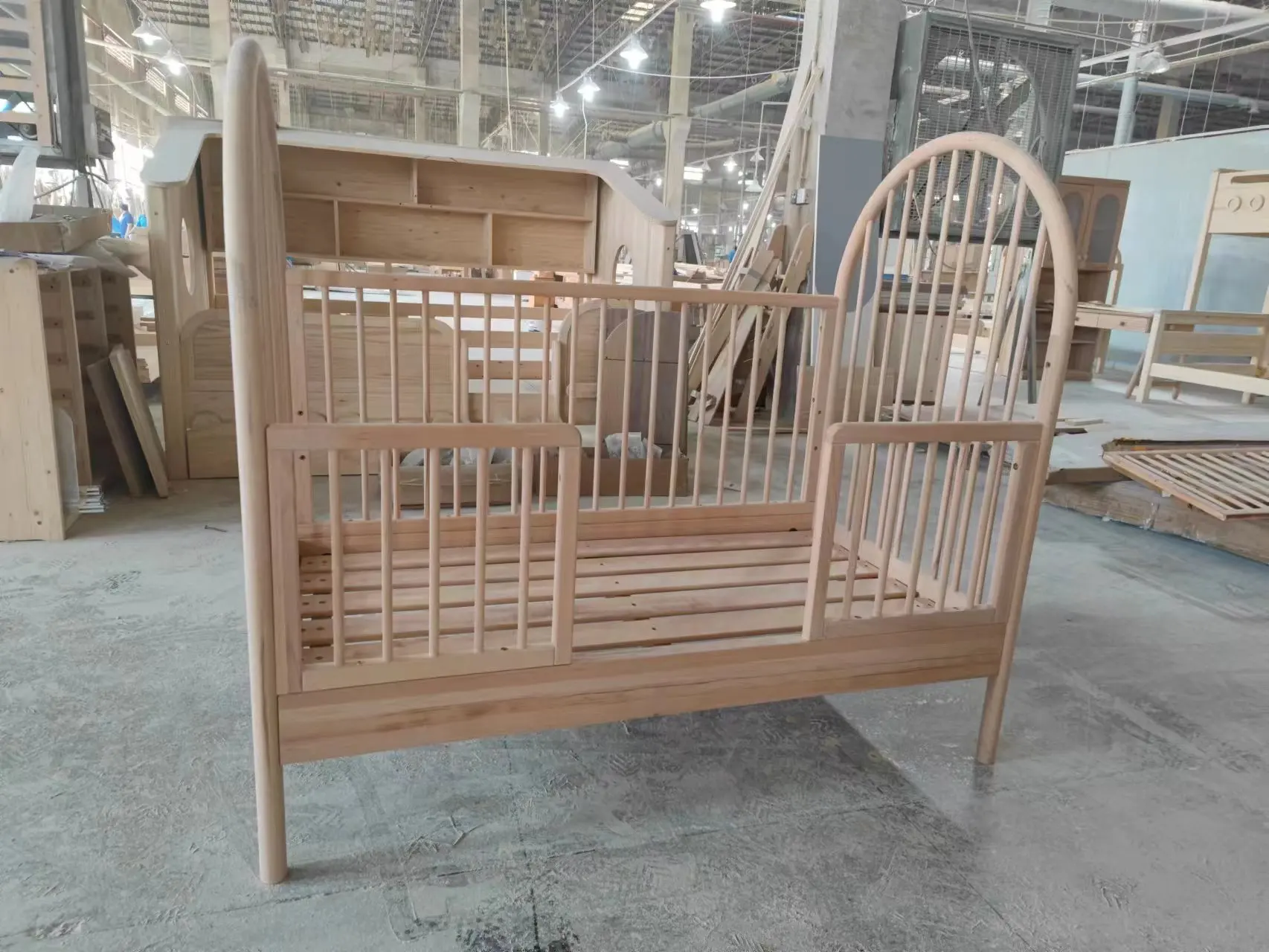 New 2025 Kids' Cribs Height Adjustable Baby Beech Cot Wooden Cot Designs New Born Wooden Cribs for Baby Bedroom Furniture