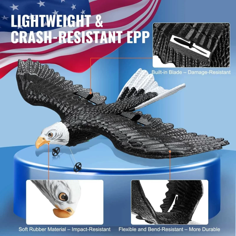 Eye-Catching Eagle Design: Stand out with this cool eagle-themed design, injecting imagination and excitement into your flying experience. Our remote airplane is perfect for adults, kids, beginners, and anyone who loves aviation fun. Spare parts like batteries and propellers keep the fun going without interruptions.